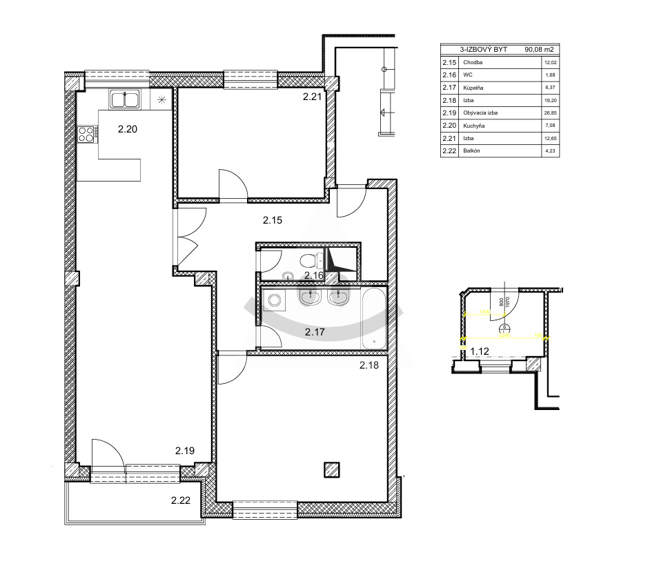 3-room apartment with a balcony, /71 m2/, Žilina - Vlčince 3