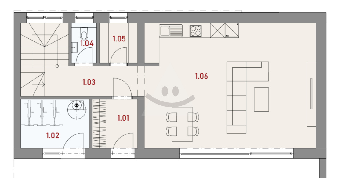 * ground floor - entrance hall, kitchen connected to the living room, separate toilet, utility room