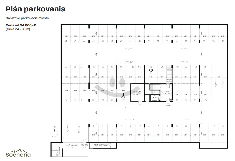 Ku každému bytu je na výber garážové parkovacie státie od 24.600,-Eur.