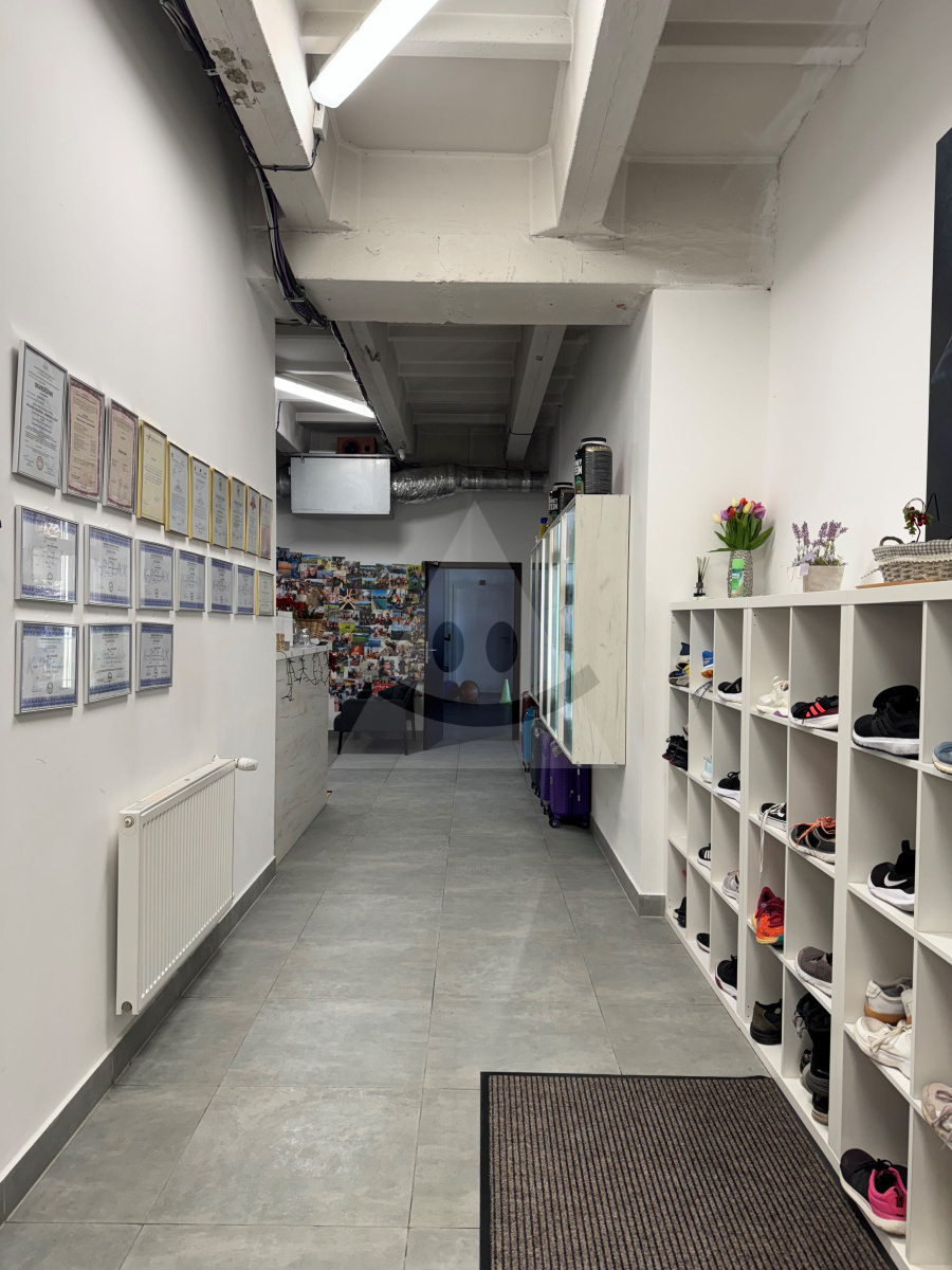 - dispozičné riešenie: vstupná chodba, recepcia s kuchynkou a priestorom na sedenie, vstup do miestností, ktoré slúžia ako fitness centrum, z toho jedna obsahuje zrkadlovú stenu, tri samostatné miestnosti, ktoré sú využívané ako kancelária, práčovňa/ sušiareň, masérňa, pánska a dámska šatňa, pánske a dámske sprchy, ďalšia veľkorysá samostatná miestnosť, v ktorej sa momentálne nachádzajú solárium a sauna, stroje na cvičenie, samostatné WC a sprcha